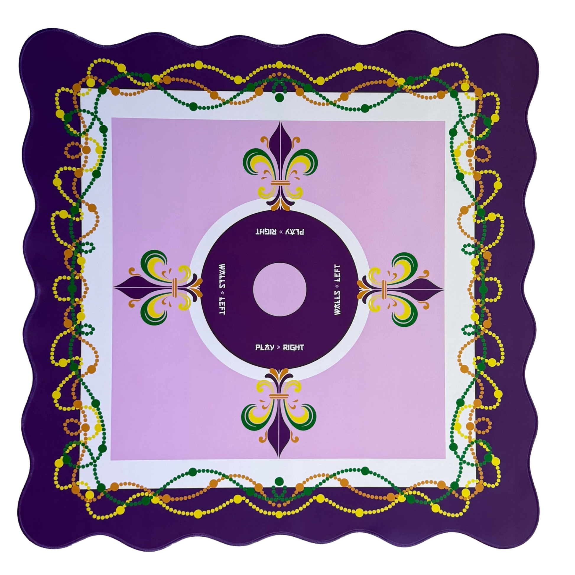 Step into the celebration with our Laissez Les Bons Temps Rouler Mahjong Mat, a vibrant Mardi Gras–inspired game mat designed to elevate every mahjong night. Featuring bold purple, gold, and green hues, swirling bead motifs, and elegant fleur-de-lis details, this scalloped mahjong table mat brings the joy of New Orleans and the magic of carnival season straight to your game table.